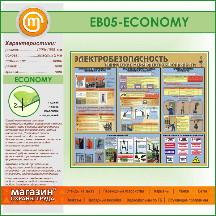 Стенд «Электробезопасность. Технические меры электробезопасности» (EB-05-ECONOMY) в Верее купить