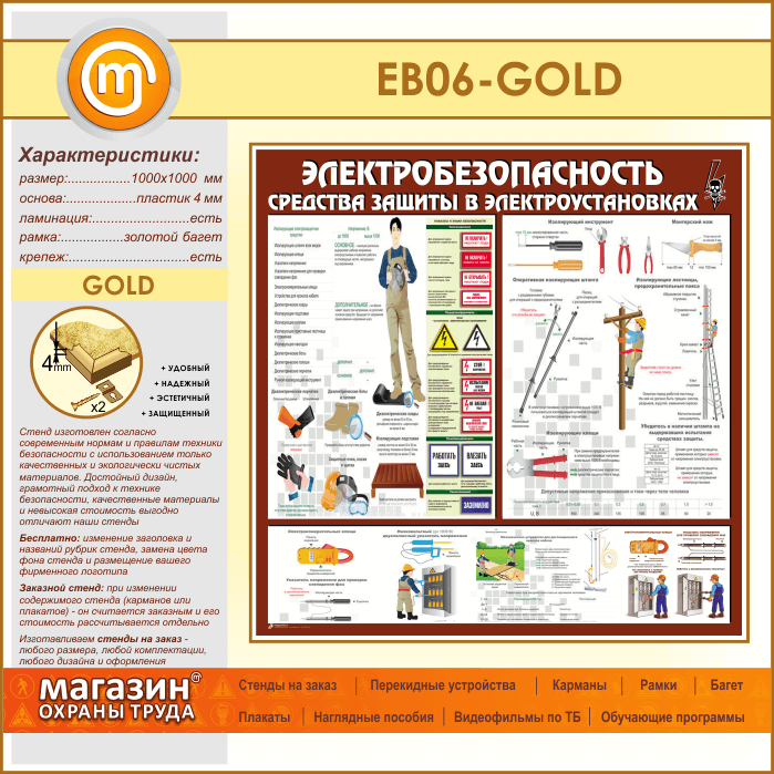 Стенд «Электробезопасность. Средства защиты в электроустановках» (EB-06-GOLD) в Верее купить