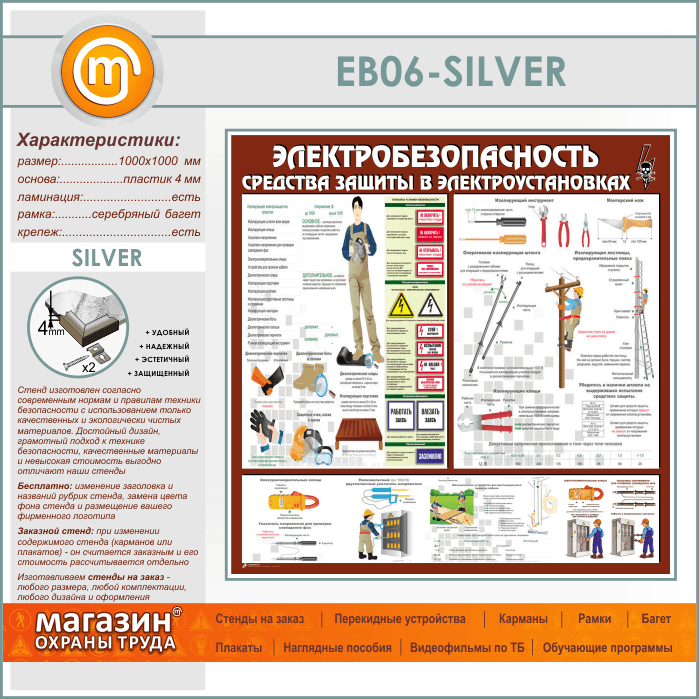 Стенд «Электробезопасность. Средства защиты в электроустановках» (EB-06-SILVER) в Верее купить