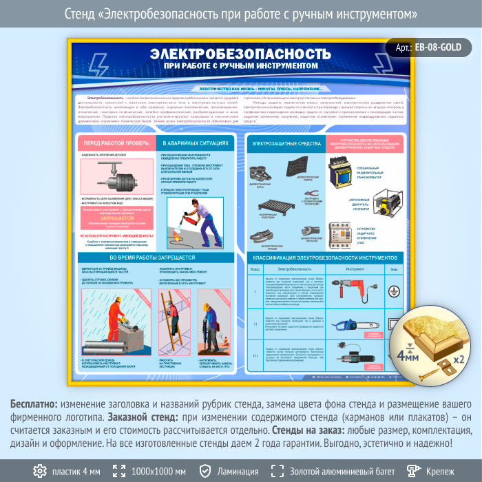 Стенд «Электробезопасность при работе с ручным инструментом» (EB-08-GOLD) в Верее купить