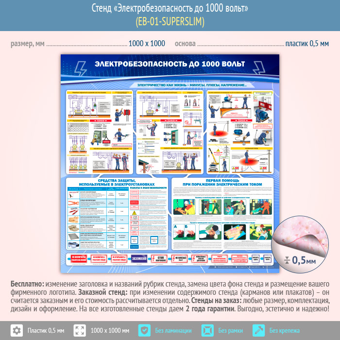 Стенд «Электробезопасность до 1000 вольт» (EB-01-SUPERSLIM) в Верее купить
