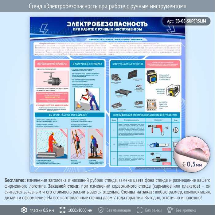 Стенд «Электробезопасность при работе с ручным инструментом» (EB-08-SUPERSLIM) в Верее купить
