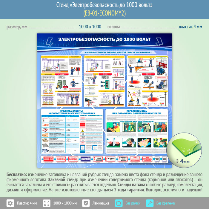 Стенд «Электробезопасность до 1000 вольт» (EB-01-ECONOMY2) в Верее купить