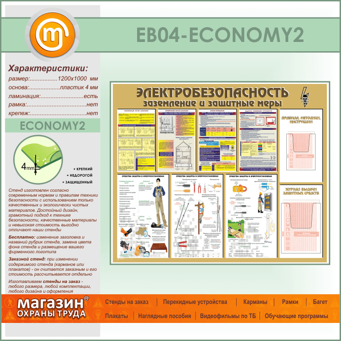 Стенд «Электробезопасность. Заземление и защитные меры» с 2 объемными карманами (EB-04-ECONOMY2) в Верее купить
