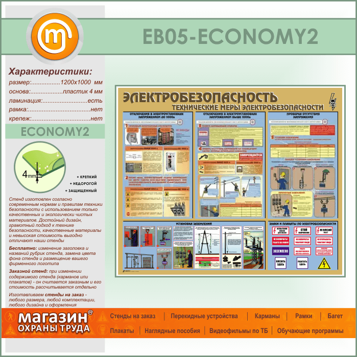 Стенд «Электробезопасность. Технические меры электробезопасности» (EB-05-ECONOMY2) в Верее купить