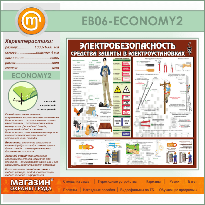 Стенд «Электробезопасность. Средства защиты в электроустановках» (EB-06-ECONOMY2) в Верее купить