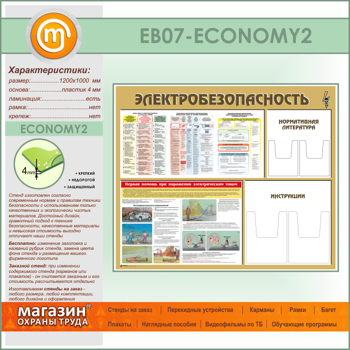 Стенд «Электробезопасность» с 4 объемными карманами (EB-07-ECONOMY2) в Верее купить