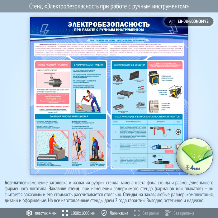 Стенд «Электробезопасность при работе с ручным инструментом» (EB-08-ECONOMY2) в Верее купить