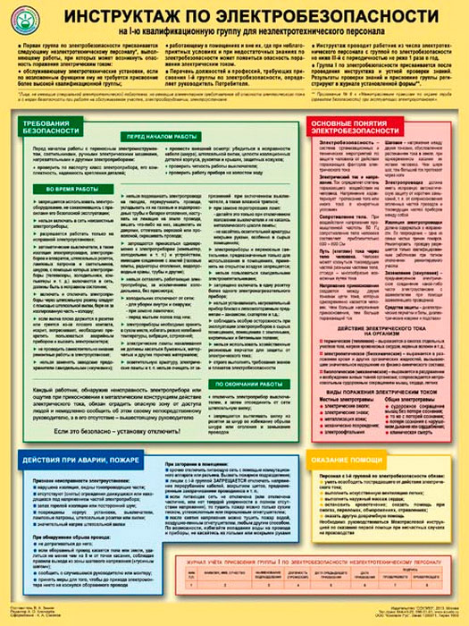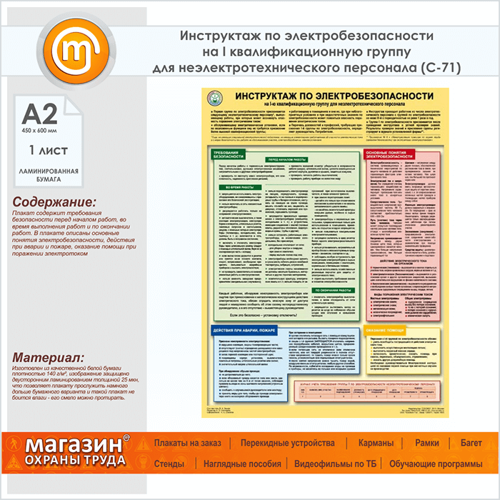 Плакат «Инструктаж по электробезопасности - на I квалификационную группу для неэлектротехнического персонала» (С-71, ламинированная бумага, А2, 1 лист) в Верее купить