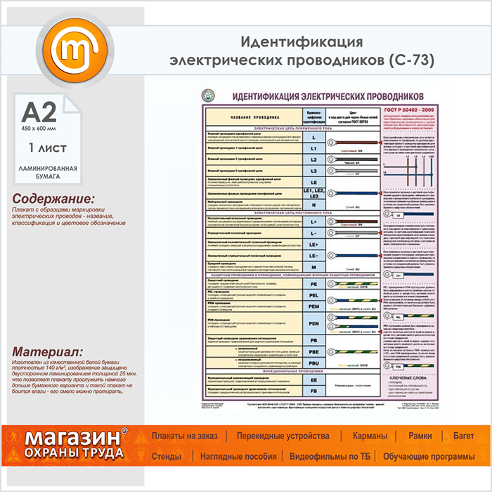 Плакат «Идентификация электрических проводников» (С-73, ламинированная бумага, А2, 1 лист) в Верее купить