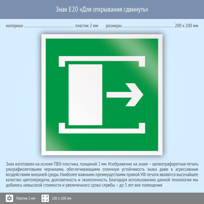 Знак E20 «Для открывания сдвинуть» (пластик, 200х200 мм) в Верее купить