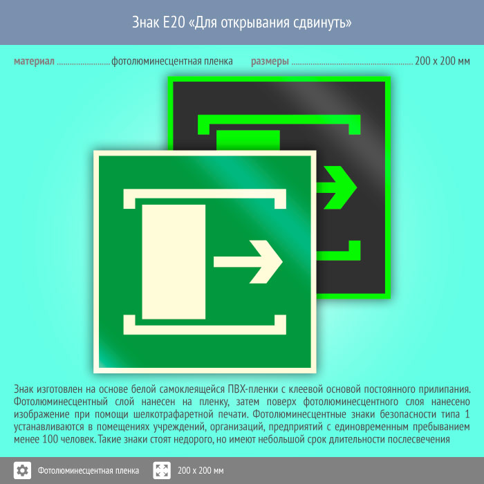 Знак E20 «Для открывания сдвинуть» (фотолюминесцентная пленка, 200х200 мм) в Верее купить