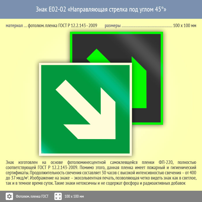 Знак E02-02 «Направляющая стрелка под углом 45°» (фотолюминесцентная пленка ГОСТ 34428-2018, 100х100 мм) в Верее купить