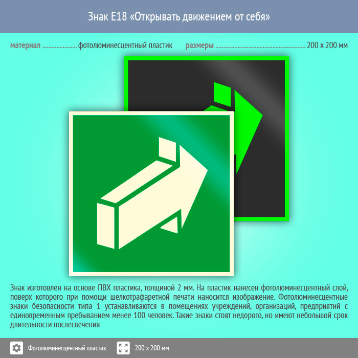 Знак E18 «Открывать движением от себя» (фотолюминесцентный пластик, 200х200 мм) в Верее купить