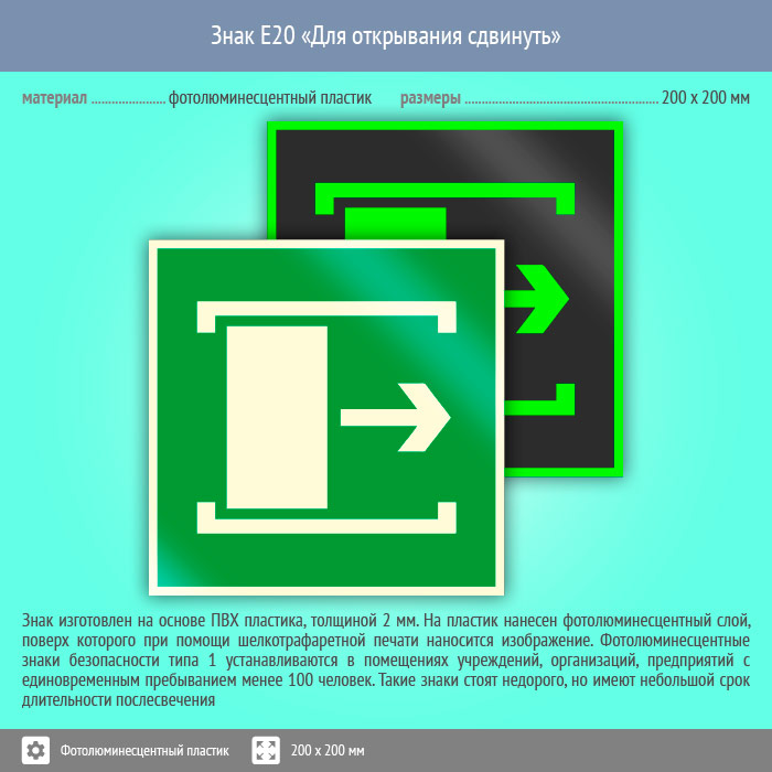 Знак E20 «Для открывания сдвинуть» (фотолюминесцентный пластик, 200х200 мм) в Верее купить