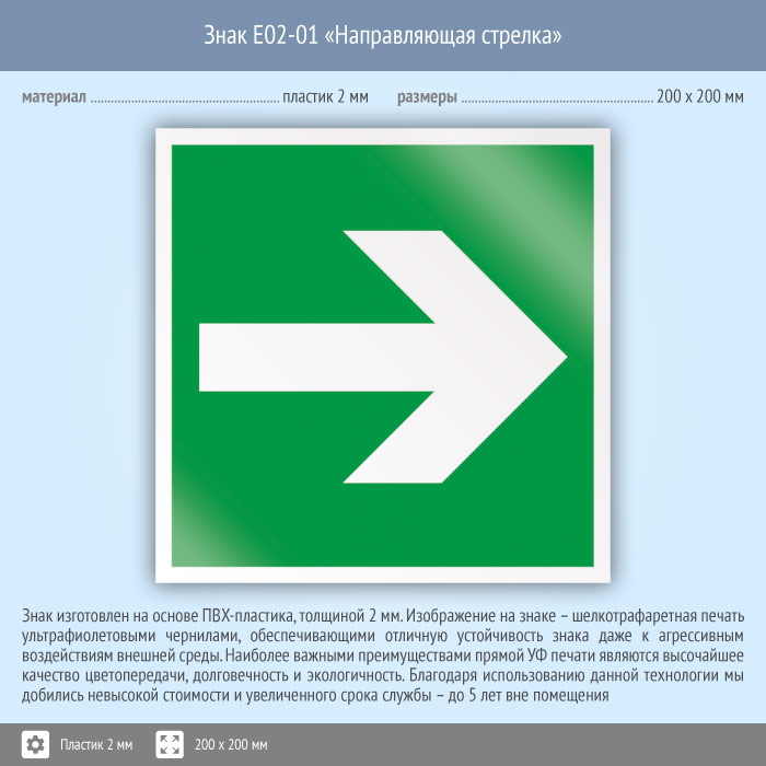 Знак E02-01 «Направляющая стрелка» (пластик, 200х200 мм) в Верее купить