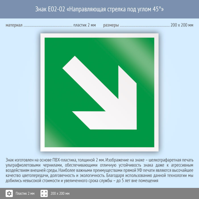 Знак E02-02 «Направляющая стрелка под углом 45°» (пластик, 200х200 мм) в Верее купить