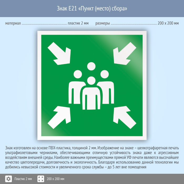 Знак E21 «Пункт (место) сбора» (пластик, 200х200 мм) в Верее купить