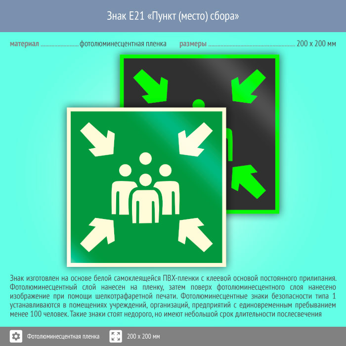 Знак E21 «Пункт (место) сбора» (фотолюминесцентная пленка, 200х200 мм) в Верее купить