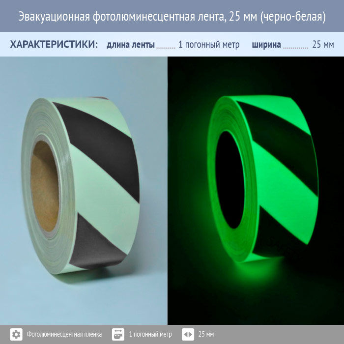 Эвакуационная фотолюминесцентная лента, 25 мм (черно-белая) в Верее купить