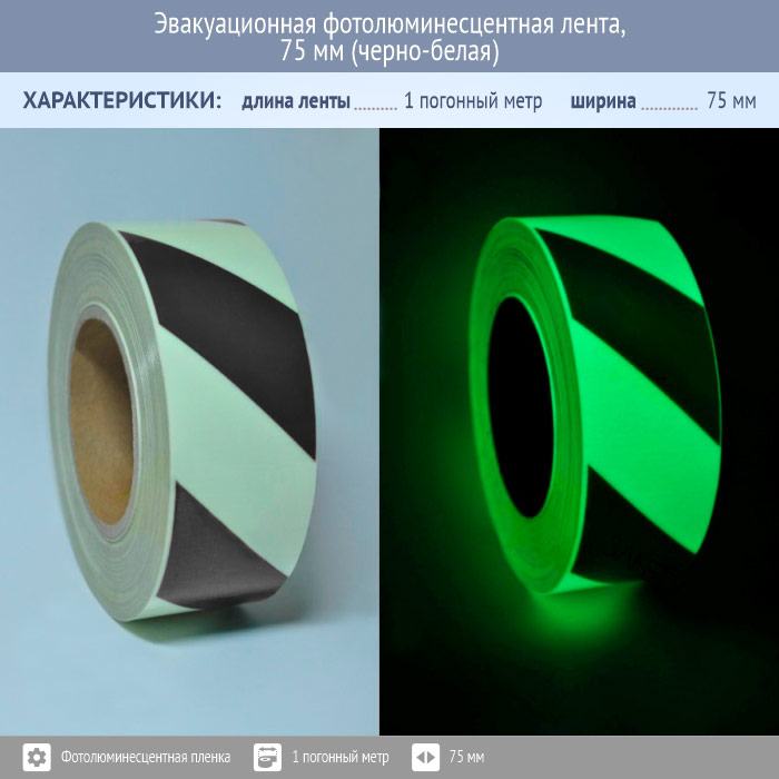 Эвакуационная фотолюминесцентная лента, 75 мм (черно-белая) в Верее купить