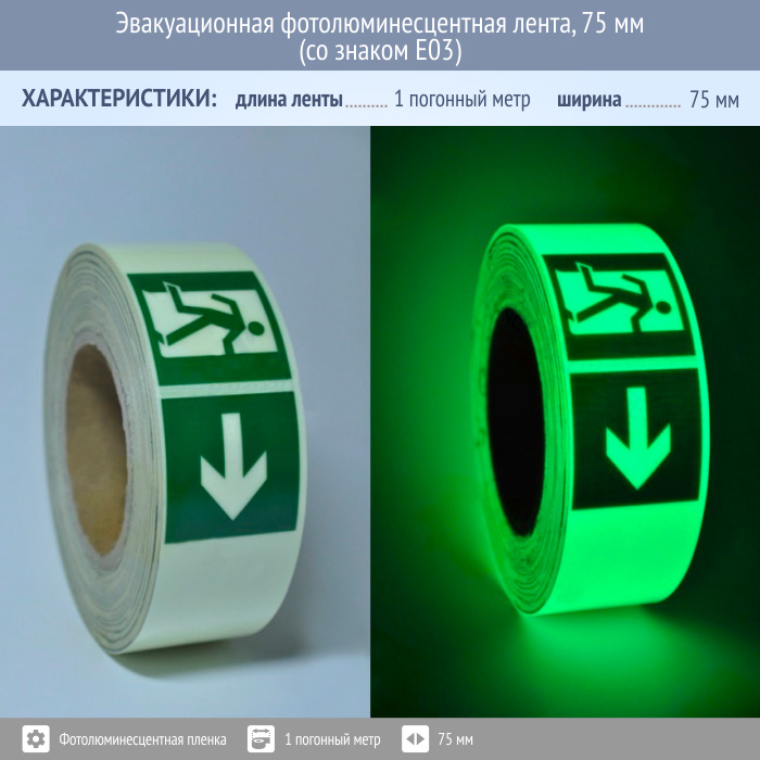 Эвакуационная фотолюминесцентная лента, 75 мм (со знаком E03) в Верее купить