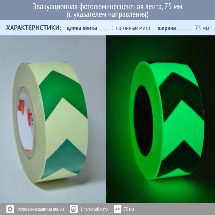 Эвакуационная фотолюминесцентная лента, 75 мм (с указателем направления) в Верее купить