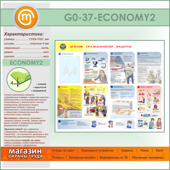 Стенд «Уголок гражданской защиты» с карманом (GO-37-ECONOMY2) в Верее купить
