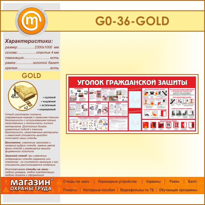 Стенд «Уголок гражданской защиты» c 2 карманами (GO-36-GOLD) в Верее купить