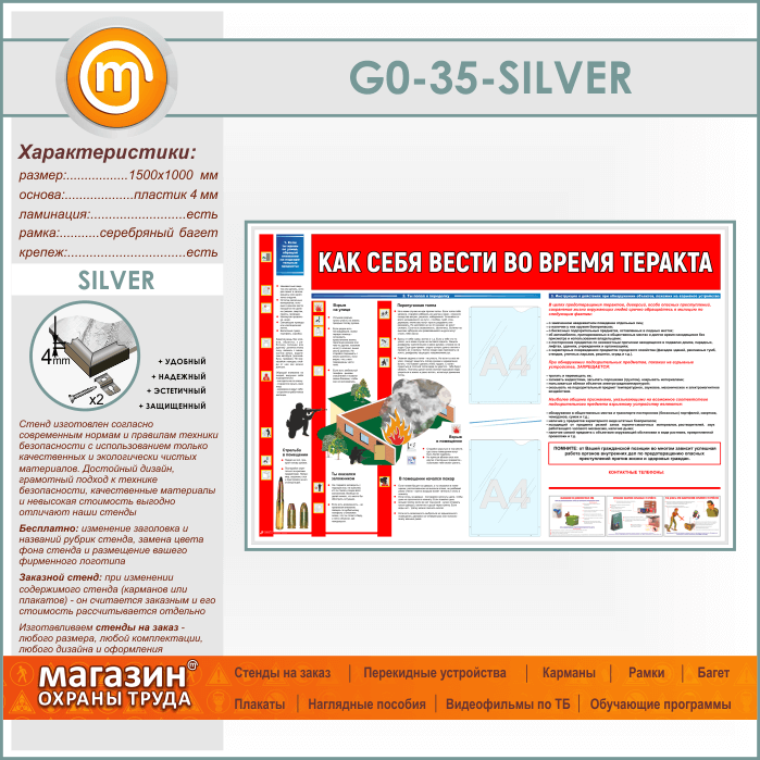 Стенд «Как себя вести во время теракта» c 2 карманами (GO-35-SILVER) в Верее купить