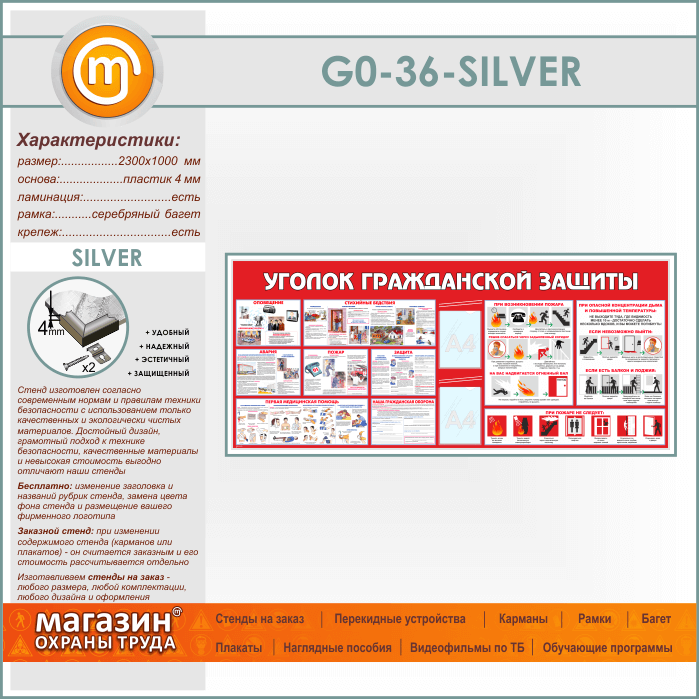 Стенд «Уголок гражданской защиты» c 2 карманами (GO-36-SILVER) в Верее купить