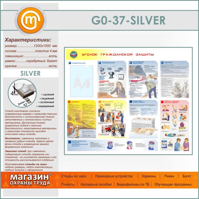 Стенд «Уголок гражданской защиты» с карманом (GO-37-SILVER) в Верее купить