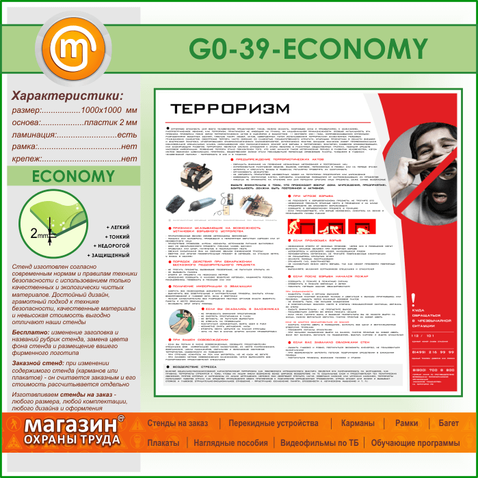 Стенд «Терроризм» (GO-39-ECONOMY) в Верее купить