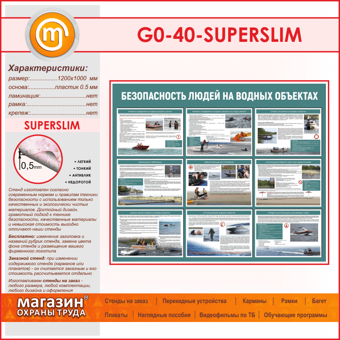 Стенд «Безопасность людей на водных объектах» (GO-40-SUPERSLIM) в Верее купить