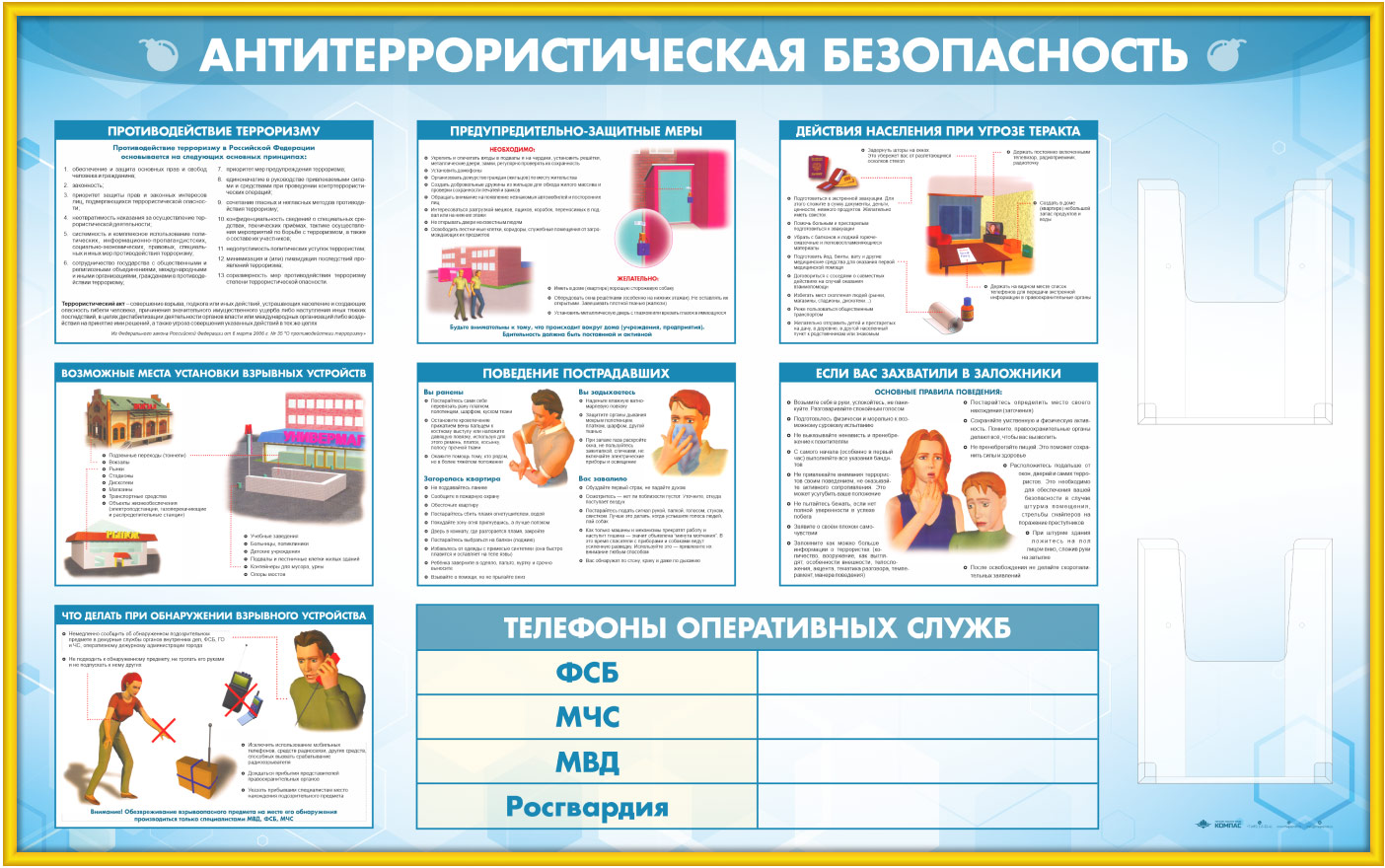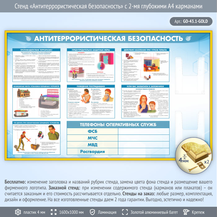 Стенд «Антитеррористическая безопасность» с 2-мя глубокими А4 карманами (GO-43.1-GOLD) в Верее купить