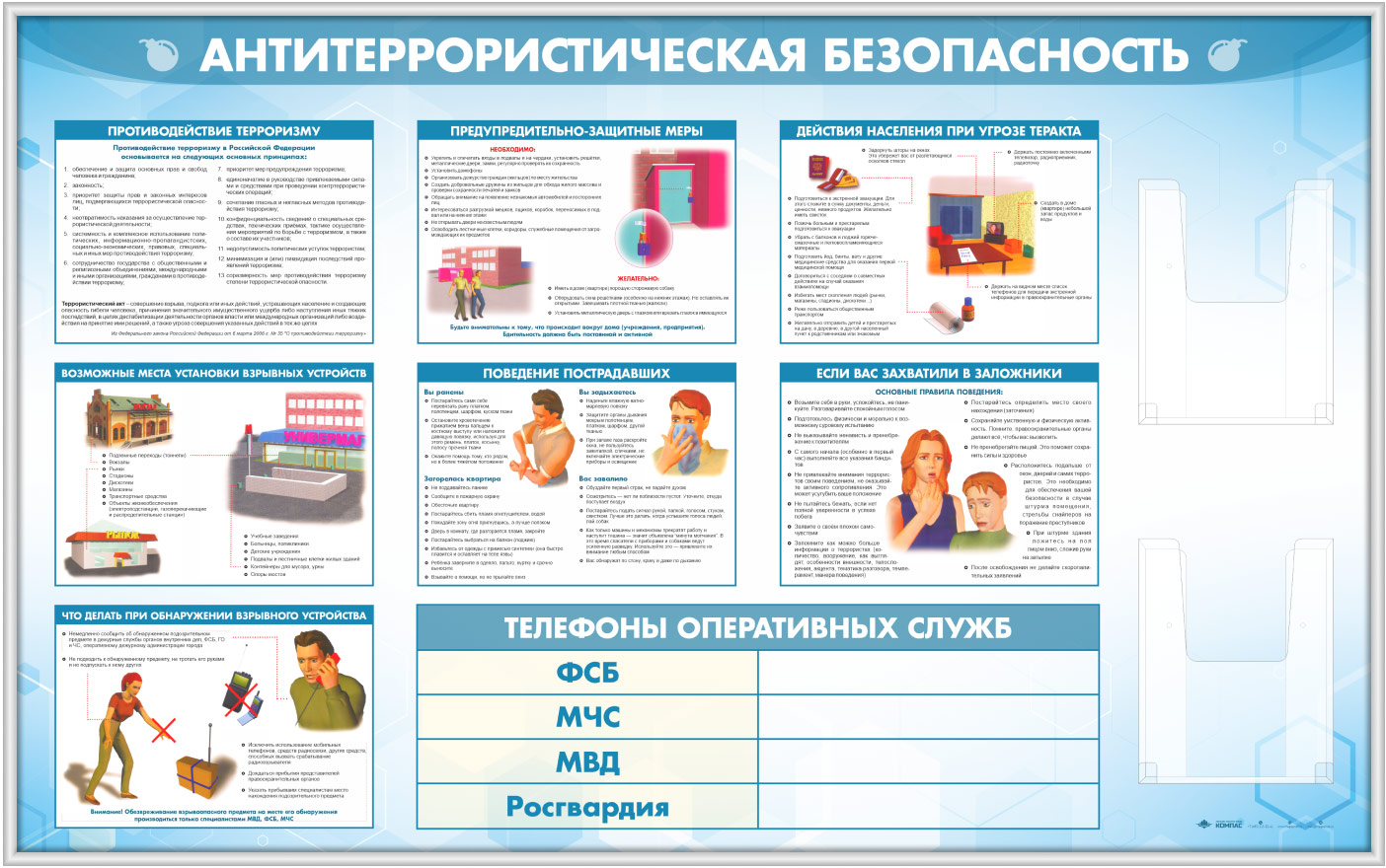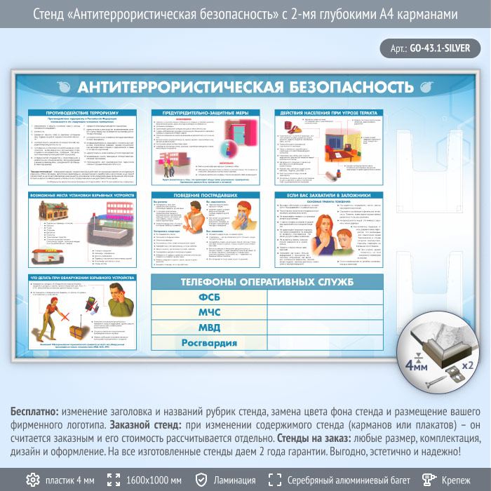 Стенд «Антитеррористическая безопасность» с 2-мя глубокими А4 карманами (GO-43.1-SILVER) в Верее купить