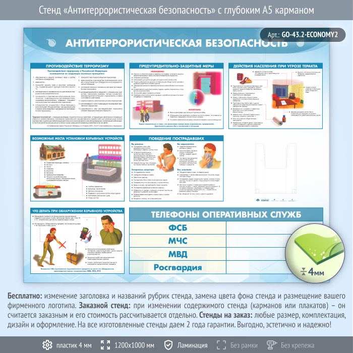 Стенд «Антитеррористическая безопасность» с глубоким А5 карманом (GO-43.2-ECONOMY2) в Верее купить
