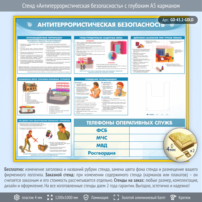 Стенд «Антитеррористическая безопасность» с глубоким А5 карманом (GO-43.2-GOLD) в Верее купить