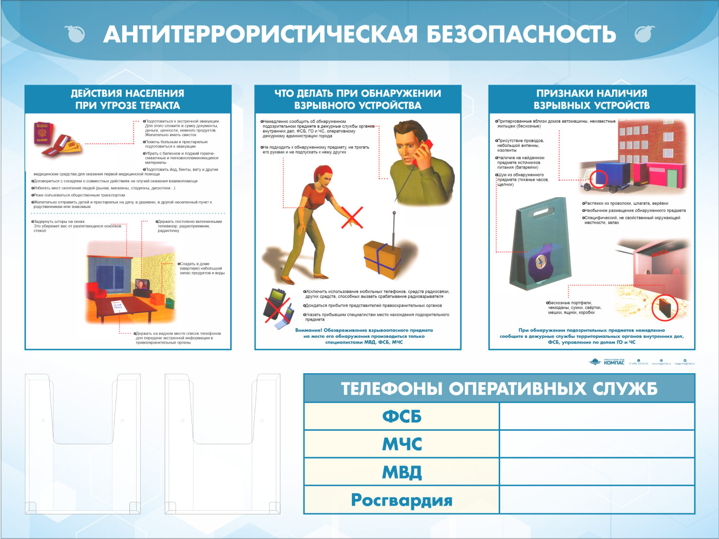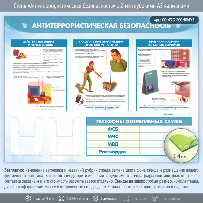 Стенд «Антитеррористическая безопасность» с 2-мя глубокими А5 карманами (GO-43.3-ECONOMY2) в Верее купить