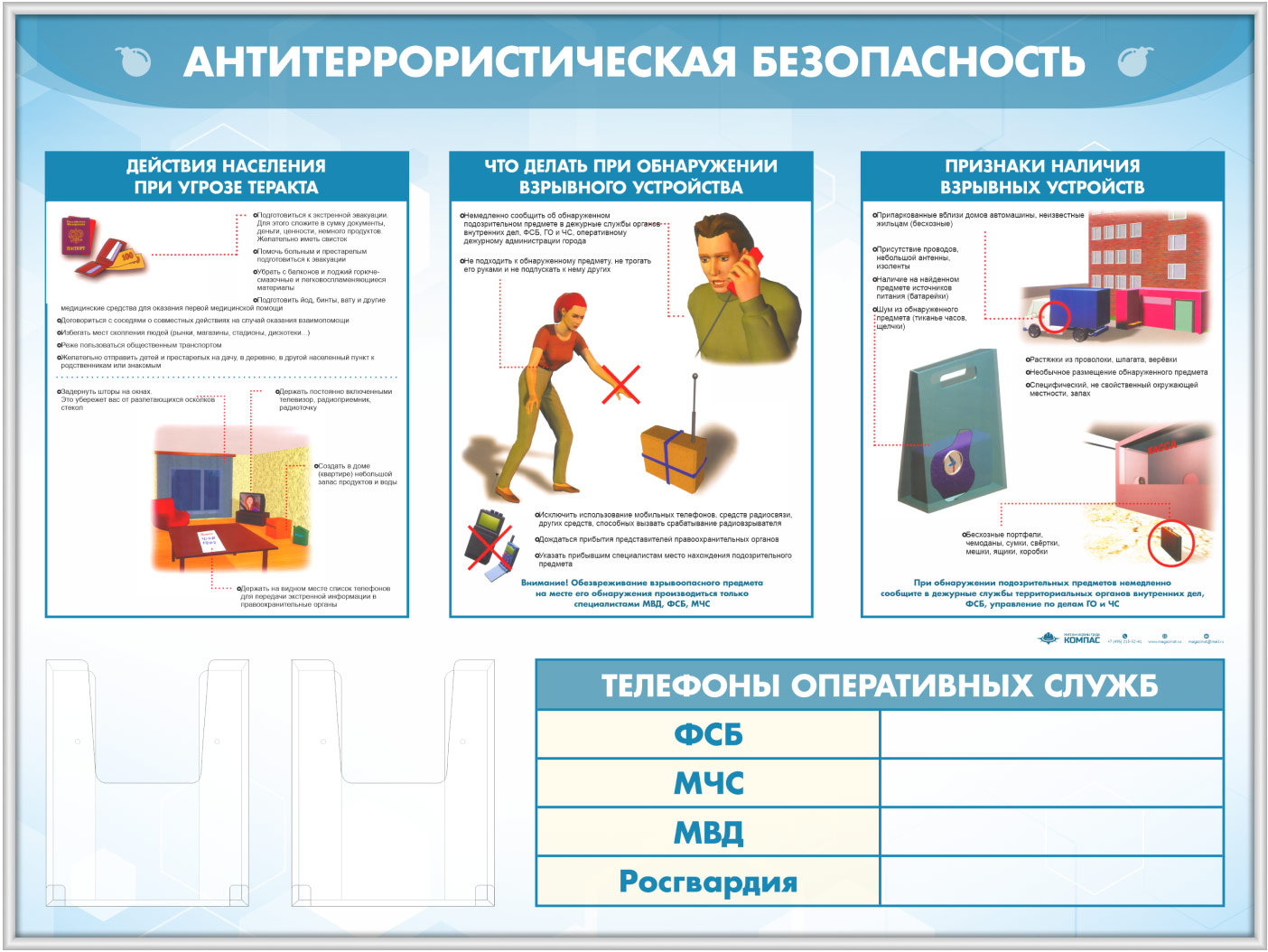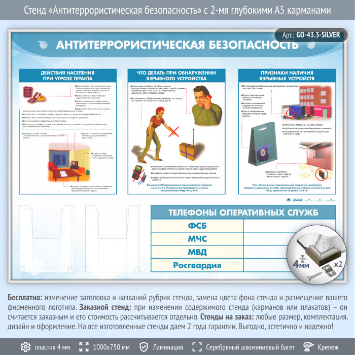 Стенд «Антитеррористическая безопасность» с 2-мя глубокими А5 карманами (GO-43.3-SILVER) в Верее купить