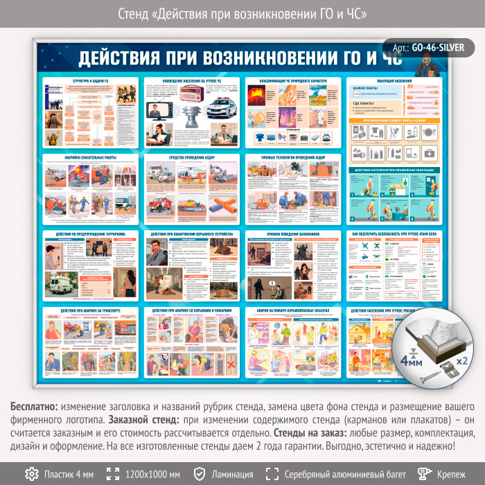 Стенд «Действия при возникновении ГО и ЧС» (GO-46-SILVER) в Верее купить