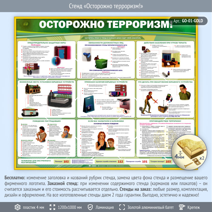Стенд «Осторожно терроризм!» (GO-01-GOLD) в Верее купить
