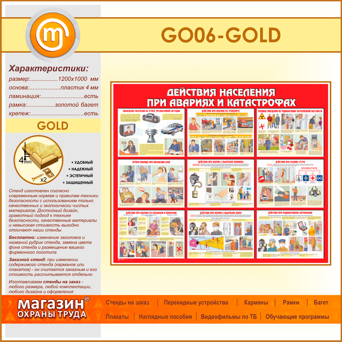 Стенд «Действия населения при авариях и катастрофах» (GO-06-GOLD) в Верее купить