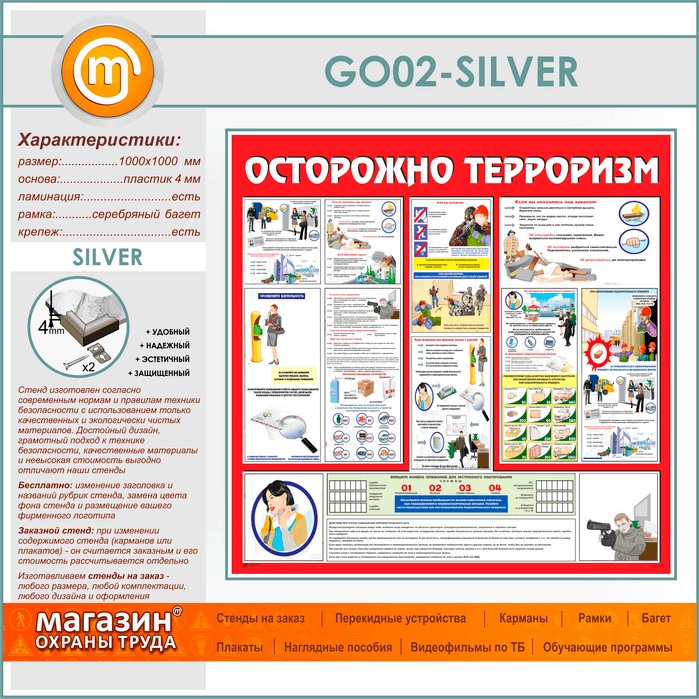 Стенд «Осторожно терроризм!» (GO-02-SILVER) в Верее купить