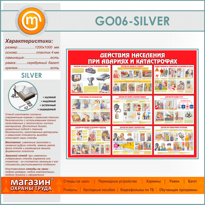 Стенд «Действия населения при авариях и катастрофах» (GO-06-SILVER) в Верее купить