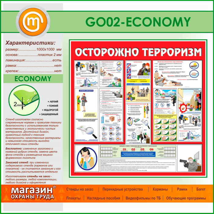 Стенд «Осторожно терроризм!» (GO-02-ECONOMY) в Верее купить