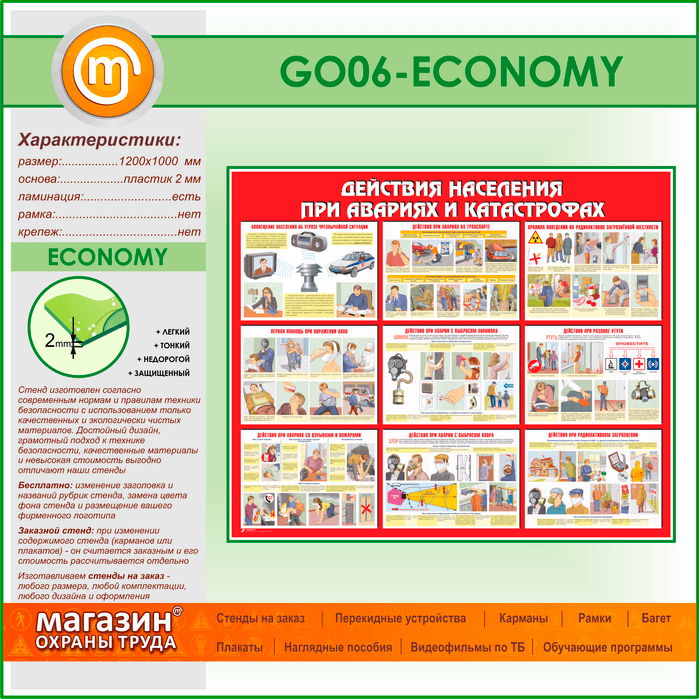Стенд «Действия населения при авариях и катастрофах» (GO-06-ECONOMY) в Верее купить