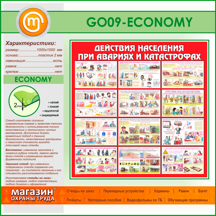 Стенд «Действия населения при авариях и катастрофах» (GO-09-ECONOMY) в Верее купить