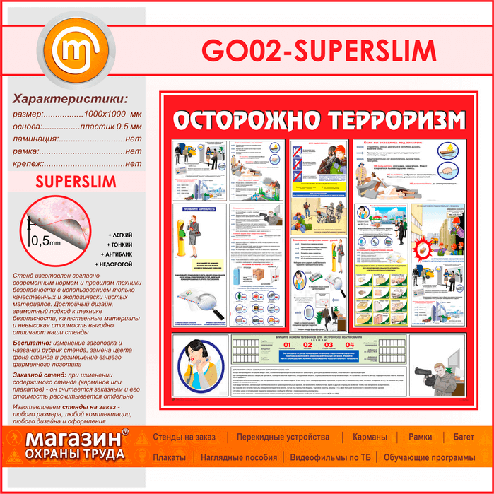 Стенд «Осторожно терроризм!» (GO-02-SUPERSLIM) в Верее купить