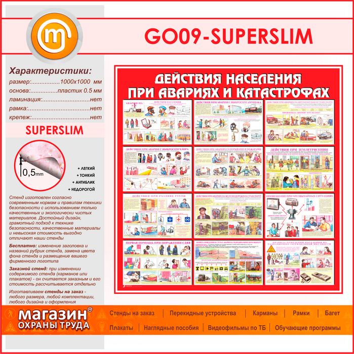 Стенд «Действия населения при авариях и катастрофах» (GO-09-SUPERSLIM) в Верее купить